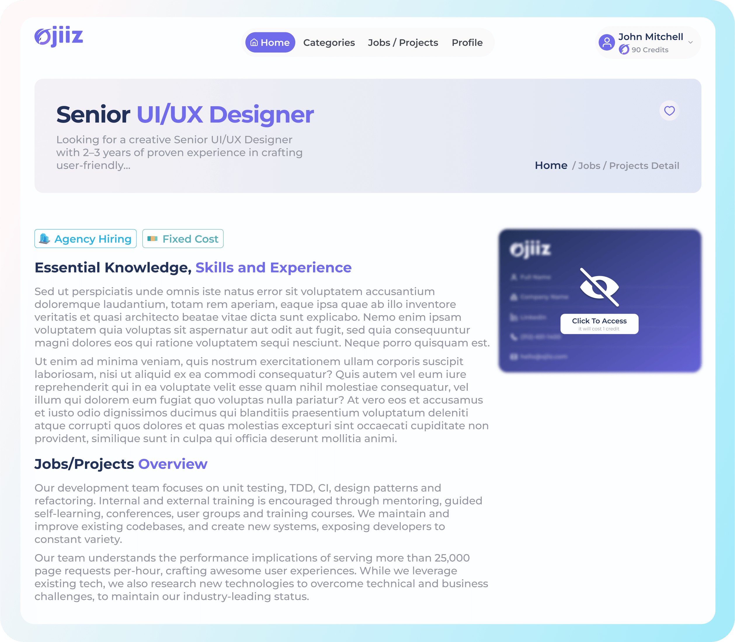 Search and preview Jobs and Projects